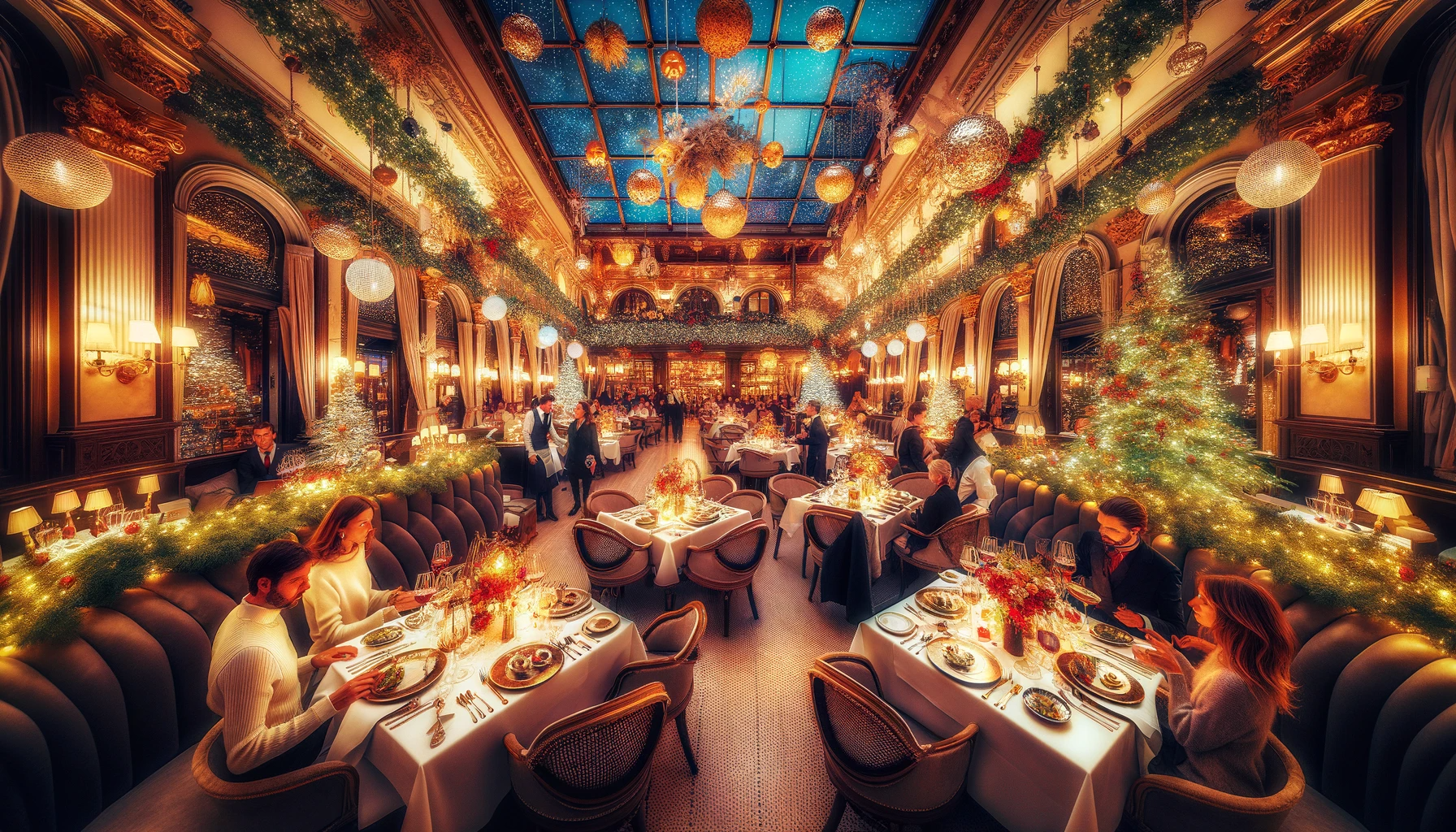 2. Decoración y Ambientación Navideña: Transformar tu establecimiento en un destino festivo con decoraciones navideñas y de Nochevieja puede mejorar significativamente la experiencia del cliente. Un ambiente acogedor, adornado con luces, árboles de Navidad y detalles decorativos, no solo atrae a los clientes, sino que también crea el escenario perfecto para celebraciones memorables.