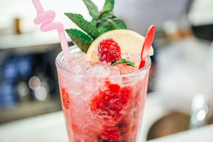 - En una coctelera, añade la ginebra, el licor de mora, el licor de arándano, el sirope de arce y el jugo de limón.